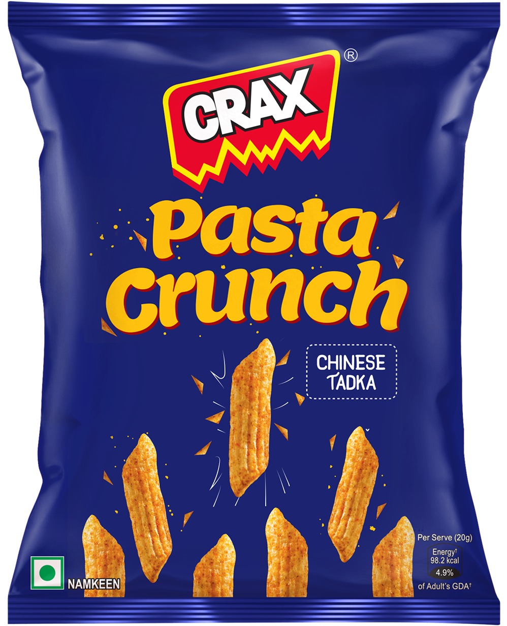 A desi twist on the Italian classic, Crax Pasta Crunch is your ideal snack-time companion. Bursting with the zesty goodness of different spices, every bite is a flavor-packed delight. Dive into it with your favorite dip or savor it straight from the pack. Get ready for a mouthwatering experience, available exclusively in the delectable Chinese Tadka flavor.